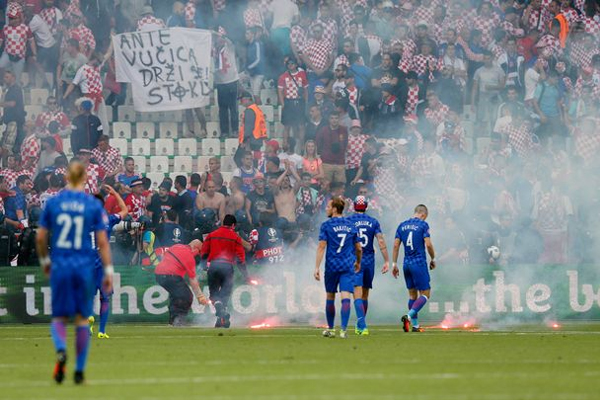 Сепак, дуелот на стадионот „Жофру Гишар“ ќе остане запаметен по дивеењето на навивачите на Хрватска во 85-тата минута, кога фрлија неколку факели на теренот, но го повредија и редарот со топовски удар.