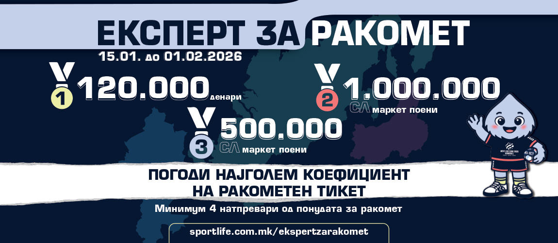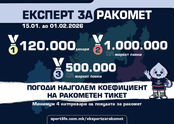 Одиграј тикет со најмалку четири натпревари од понудата за ракомет кој ќе биде регистриран на твојата Sport Life клуб-картичка.